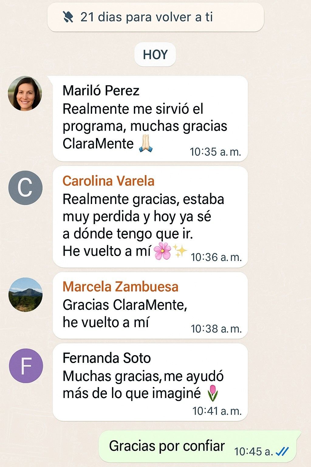 Clara Mente es un programa de 21 días creado para mujeres que cargan con todo, pero sienten que algo en su interior pide una pausa.
